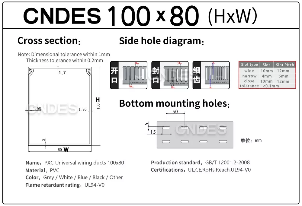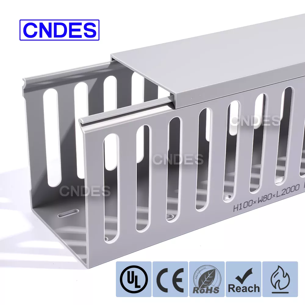 Naše 100×80 flexibilní štěrbinová PVC kabeláž nabízí dostatek vnitřního prostoru a flexibilní štěrbinovou strukturu, což umožňuje snadné vedení kabelů, úpravy nebo rozšiřování v terénu. Je ideální pro aplikace, kde je kritické využití prostoru a flexibilita, jako jsou ovládací skříně, průmyslové panely, automatizační systémy a elektrické skříně.