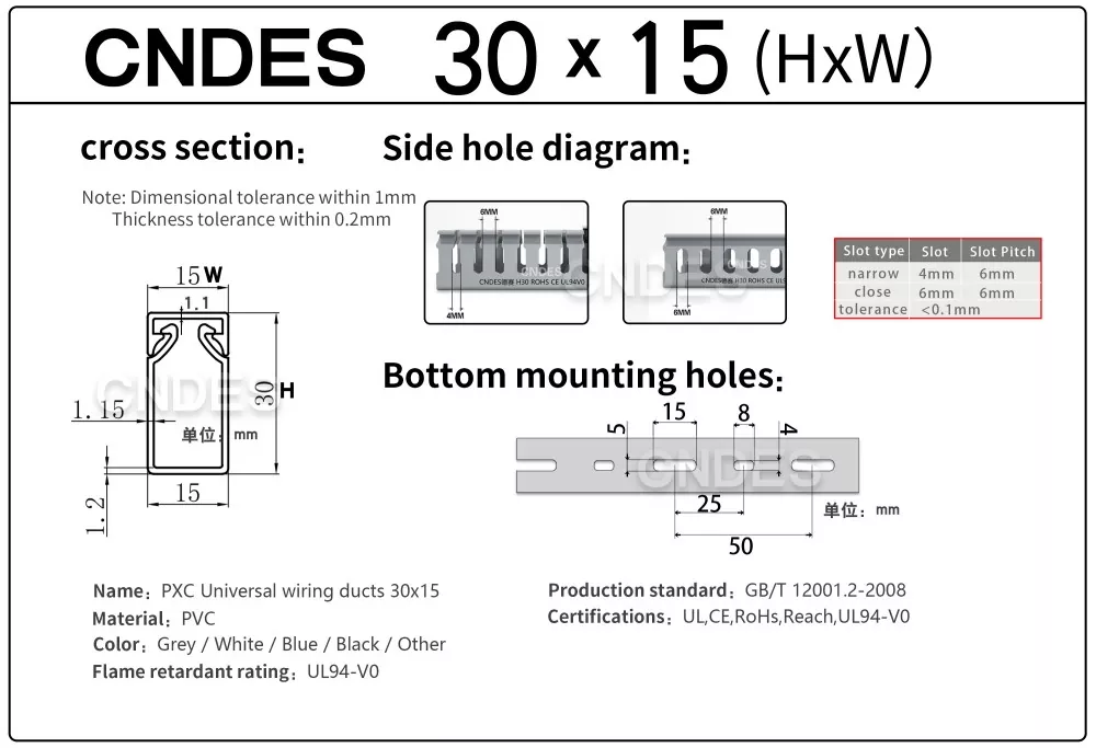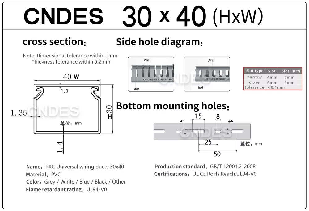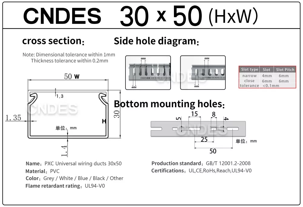 Přizpůsobený 30mm štěrbinový PVC kabel pro vedení kabelů od CNDES je navržen pro efektivní, kompaktní a bezpečné vedení kabelů v různých průmyslových, komerčních a rezidenčních prostředích. Tento kanál je ideální pro aplikace s omezeným prostorem a zajišťuje, že vaše kabeláž je organizovaná, chráněná a snadno dostupná.