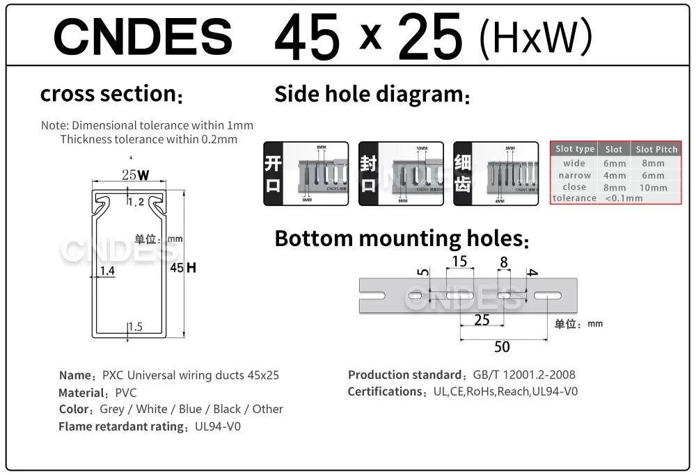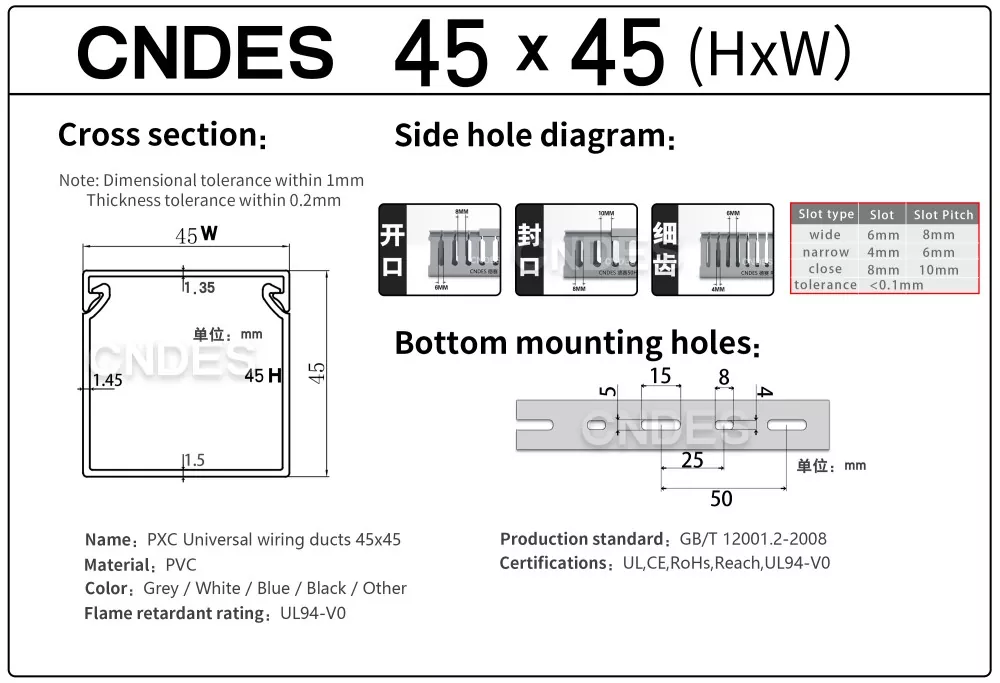 Jako profesionální výrobce bychom vám rádi poskytli 45 mm štěrbinový kryt PVC drátu CNDES o výšce 45 mm. Včetně 45*25, 45*33, 45*45.