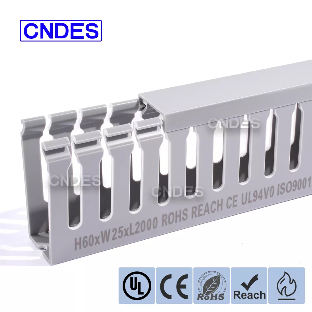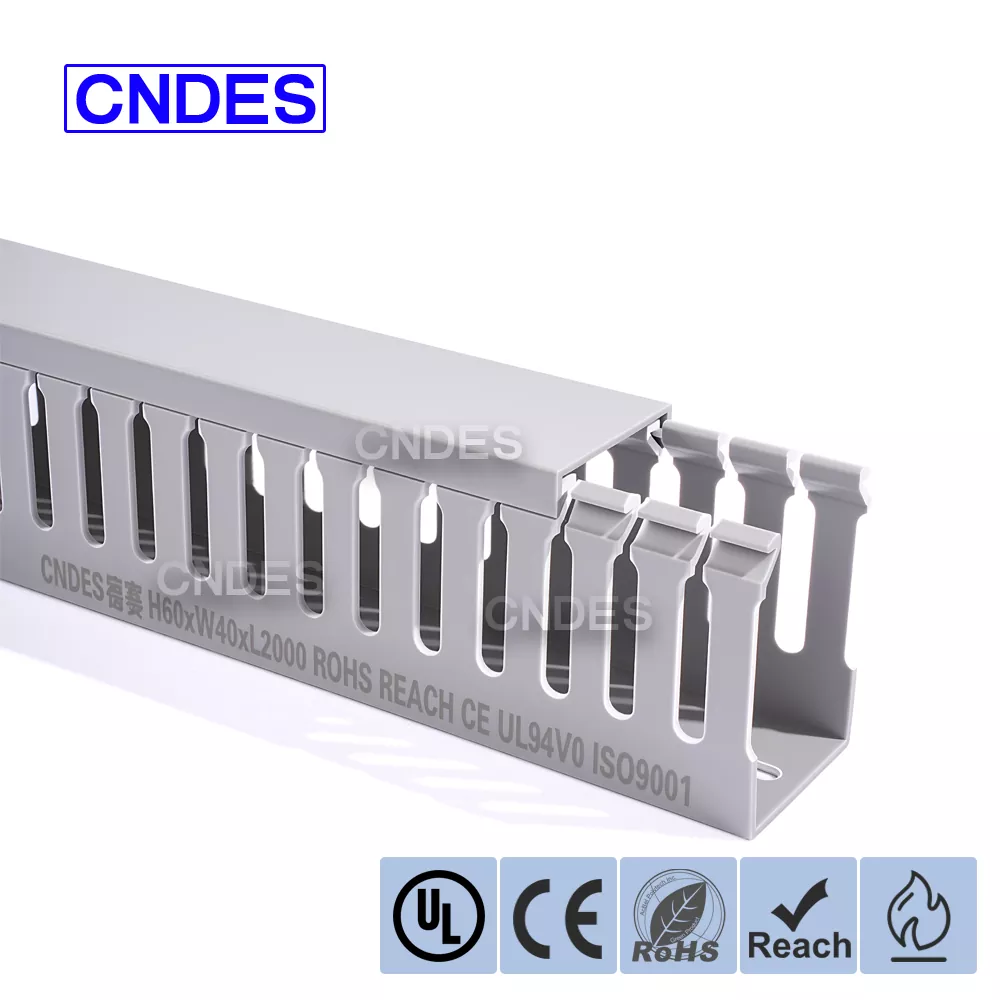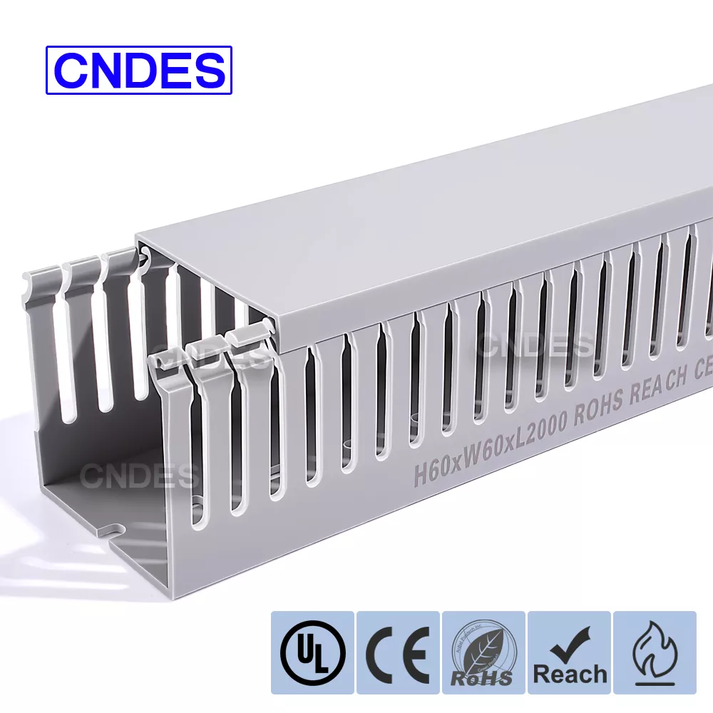 Tento přizpůsobený 60mm šedý štěrbinový kabelový kanál z PVC vyrábí společnost CNDES, přední dodavatel kabelových žlabů z PVC v Číně. Konstrukce s otevřenou drážkou usnadňuje vkládání, vyjímání a následné úpravy kabelu. Ať už zapojujete PLC systémy, elektrické ovládací panely nebo mechanická zařízení, tento 60 mm vysoký šedý štěrbinový kabelový žlab z PVC zajistí, že vaše kabely budou chráněny a udržovány čisté a organizované.