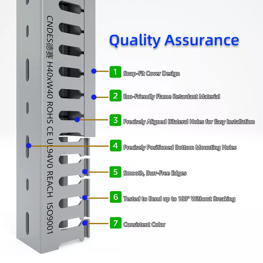 Máme vysoké standardy kontroly kvality, abychom zajistili, že vám můžeme dodat kvalitní kabelové kanály. Máme čtyři inspektory kvality, kteří pracují na směny a provádějí online kontroly našich produktů. To zajišťuje, že naše výrobky jsou čtvercového tvaru, mají hladký povrch, splňují přijatelné normy houževnatosti, mají přesné umístění otvorů a že rozměrové chyby jsou kontrolovatelné.