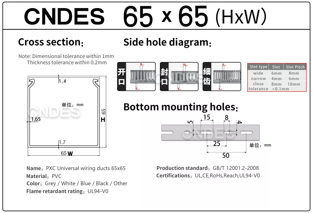 Tento kabelový žlab vyrobený z vysoce kvalitního PVC materiálu splňuje normu UL94-V0 zpomalující hoření a je samozhášivý, vhodný pro instalační prostředí s extrémně vysokými požadavky na elektrickou bezpečnost.