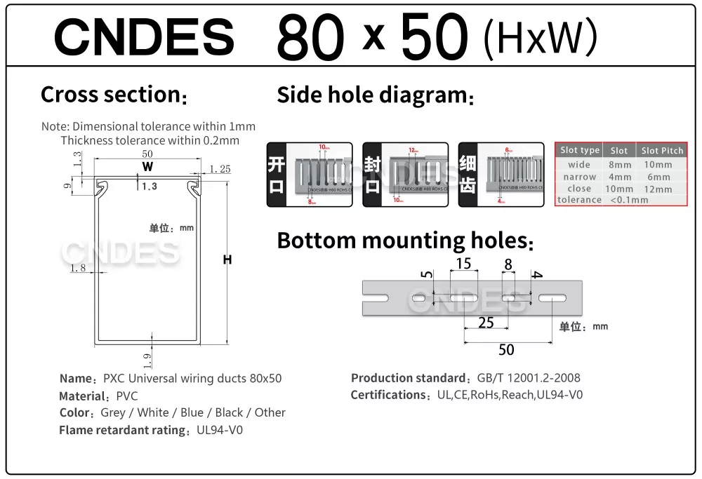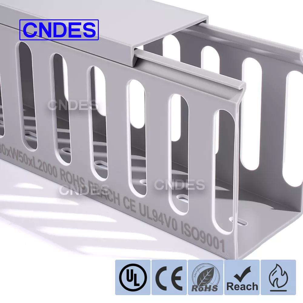 CNDES je profesionální výrobce PVC štěrbinových kabelových žlabů se sídlem v Číně. Zde si představíme náš 80×50 Slotted PVC Panel Cable Organizer, kde 80*50mm představuje kabelový žlab o výšce 80mm a šířce 50mm.